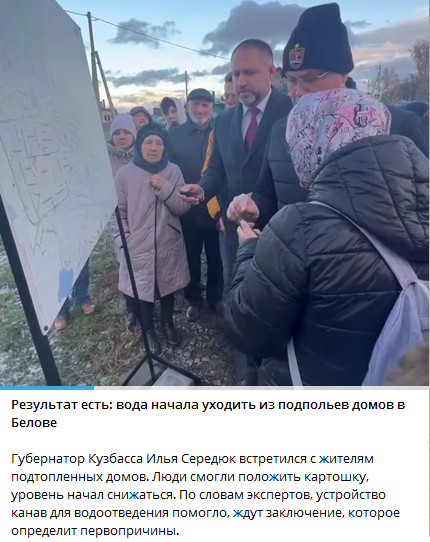 В пятницу губернатор Кузбасса Илья Середюк и глава администрации БГО Сергей Алексеев посетили несколько подтопленных улиц, пообщались с жителями. Большинство подтопленцев не смогли попасть на встречу, а те, кому удалось рассказать губернатору о продолжающихся проблемах, с удивлением прочитали в СМИ и пабликах в материалах по итогам визита главы региона сугубо положительную информацию.