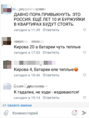 «Это часть из опубликованного с соцсетях, ТЭЦ планомерно убавило нагрев воды...что происходит? Это эксперименты какие-то? Может закрыть этот Интеграл, и в счет бюджета выдать всем буржуйки, и ежегодно дрова выписывать втридорога?», - горожанин также поделился скриншотами, где местные жители сообщают об отсутствии отопления.