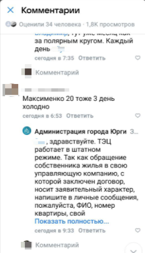 Обращение по поводу холодных батарей появилось в социальных сетях губернатора Кузбасса Ильи Середюка. Местный житель сообщил, что юргинцы в соцсетях массово бьют тревогу, а мэр Юрги Алексей Фомин «ездит по ушам». При этом, людей якобы «футболят по конторам» по вопросу отопления.