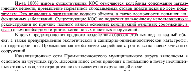 Давайте порассуждаем, где в Промышленновском округе могут располагаться те самые "специально отведенные места" для сброса производственных стоков. Согласно опубликованному в Сети проекту "Программы комплексного развития систем коммунальной инфраструктуры Промышленновского муниципального округа на 2023-2030 годы", очистные сооружения в пгт Промышленная изношены на 100%.