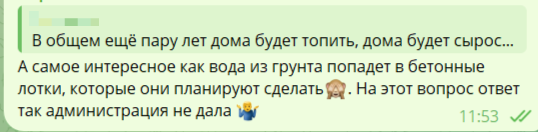 «В общем ещё пару лет дома будет топить, дома будет сырость, плесень и т. д., дома будут разрушаться. И какие закупочные материалы Вы подготавливаете для объявления аукциона? Уточните пожалуйста, хотелось бы знать, про что речь идет», - недоумевают местные.