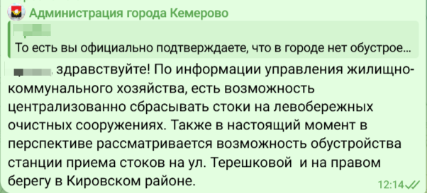 Комментатор уточнил, подтверждают ли власти официально, что в городе нет обустроенной по всем правилам санитарии площадки для утилизации канализационных отходов