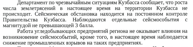 Влияет ли угледобыча на сейсмическую активность в Кузбассе, "Среда" поинтересовалась в администрации правительства региона. Ответ чиновников был однозначен - нет.