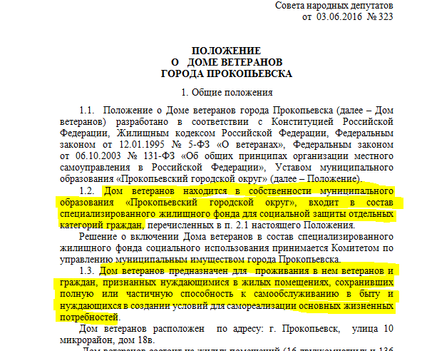 Особенно возмутительным этот факт становится в свете того, что Дом ветеранов имеет особый социальный статус, официально подтверждённый решением Прокопьевского городского Совета №323 от 3 июня 2016 года. В учреждении проживают ветераны труда, дети участников Великой Отечественной войны и другие социально незащищённые категории граждан.