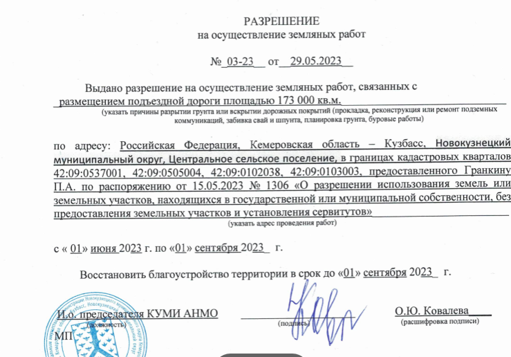 Вновь возвращаемся к теме дороги, по которой вывозится уголь с разреза "Чернокалтанский" АО "СУПК". Начнем с того, что изначально линейный объект — "Подъездная дорога" должен был использоваться ИП Павлом Гранкиным для подъезда к территории здания фермы молочного направления (стойловое содержание) по адресу: Российская Федерация, Кемеровская область - Кузбасс, Новокузнецкий муниципальный округ.