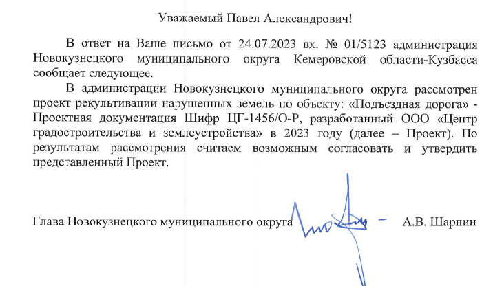 Весной-осенью 2024 года в соответствии с проектом рекультивации нарушенных земель должны были выполняться чистовая планировка (земельные участки в границах кварталов 42:09:0537001, 42:09:0505004, на территории Новокузнецкого муниципального округа) и выполаживание откосов (земельные участки с кадастровыми номерами - 42:09:0537001:135 42:09:0000000:4292, 42:09:0000000:4293, 42:00:0000000:33177, 42:00:0000000:33176 - в собственности ИП Гранкин П.А.) с нанесением почвы, внесением удобрений и посевом трав.