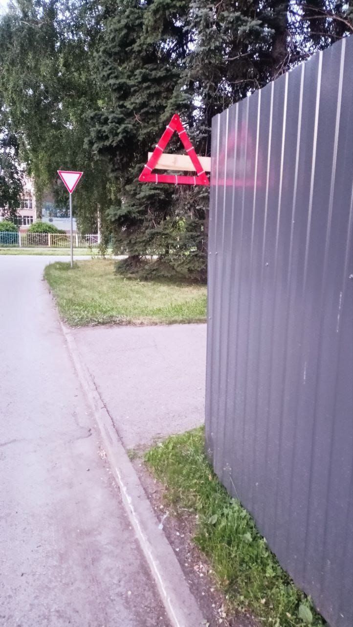 Самодельный знак, задача которого предупредить водителей о вероятности внезапного появления пешехода или велосипедиста, появился у огороженной части сквера Комсомольский в южной столице Кузбасса.