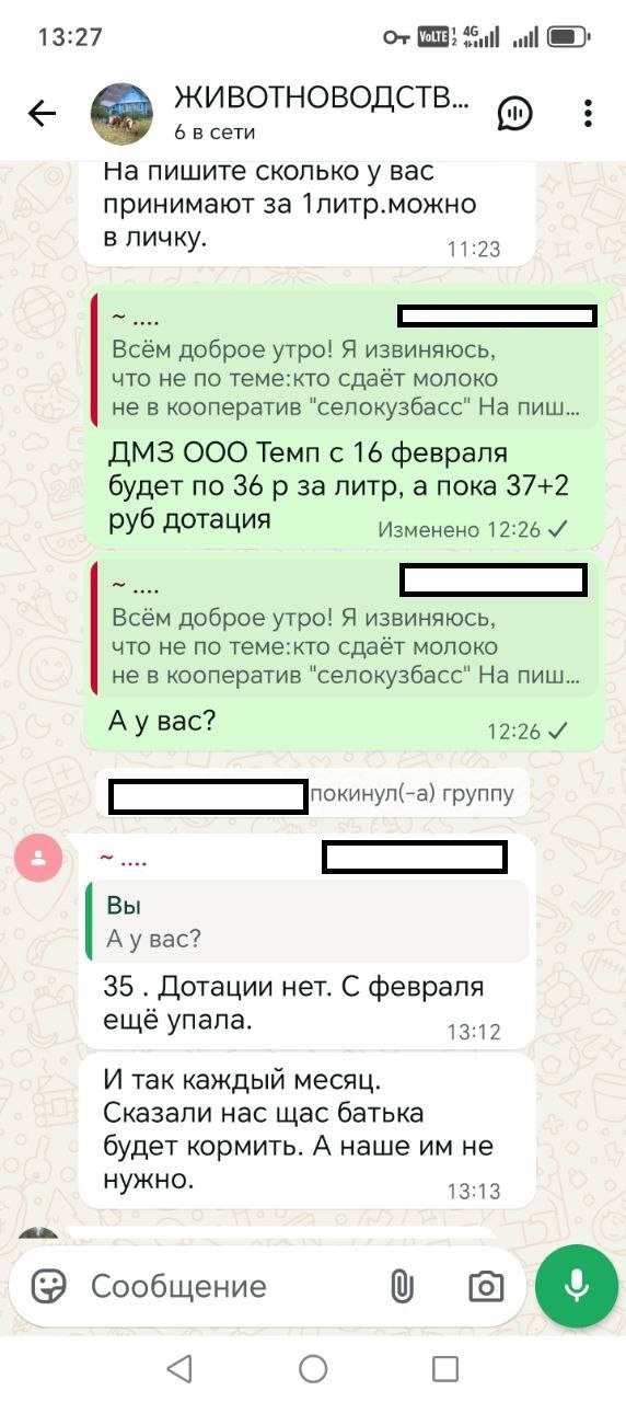 Напомним, жители отдалённых деревень Промышленновского округа - Падунской, Денисовки, Абышево, Озерков, Васьково, Усть-Каменки, Байрака и других населённых пунктов - в январе столкнулись с задержками расчётов по закупу молока. Сырьё по 37 рублей за литр у местных жителей закупали аффилированные с ДМЗ ООО "Темп" и ООО "Цветущий". В конце 2025 года у закупщиков перед фермерами накопились долги за ноябрь и декабрь, которые стали погашать в конце января.