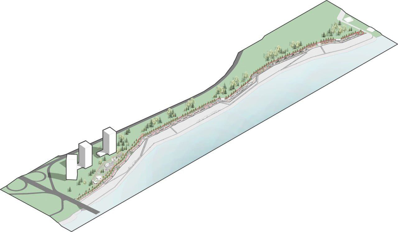 Администрация города тем временем красиво "делает правильные акценты" на рисунках со "светлым будущим" территории левобережного пока еще тополевого леса, а в будущем, возможно, территории жилого массива с узенькой бетонной полоской дамбы с набережной по ее гребню.