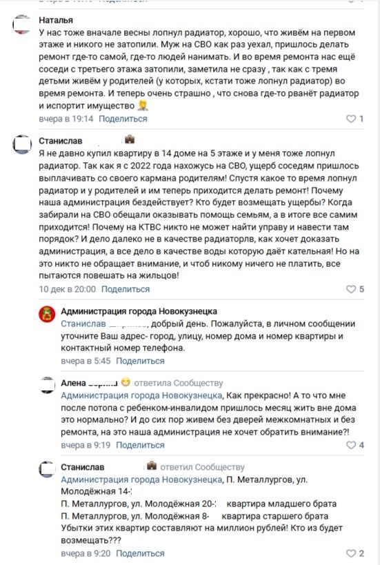 Учредителем МКП "КТВС" является администрация Новокузнецкого муниципального округа. Думается, что именно этим объясняется упорное нежелание замечать проблему и стремление переложить ответственность за происходящее на самих жителей. Если бы тепло жителям поселка Металлургов предоставляла какая-нибудь ОООшка, то проверяющие ходили бы караванами.