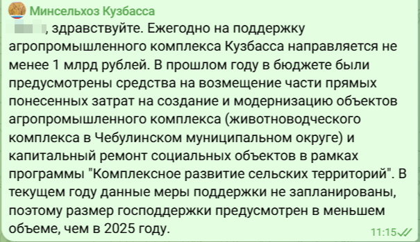 При этом в 2026 году агропромышленному комплексу Кузбасса предстоит пережить не лучшее время – в текущем году мер поддержки не запланировано.