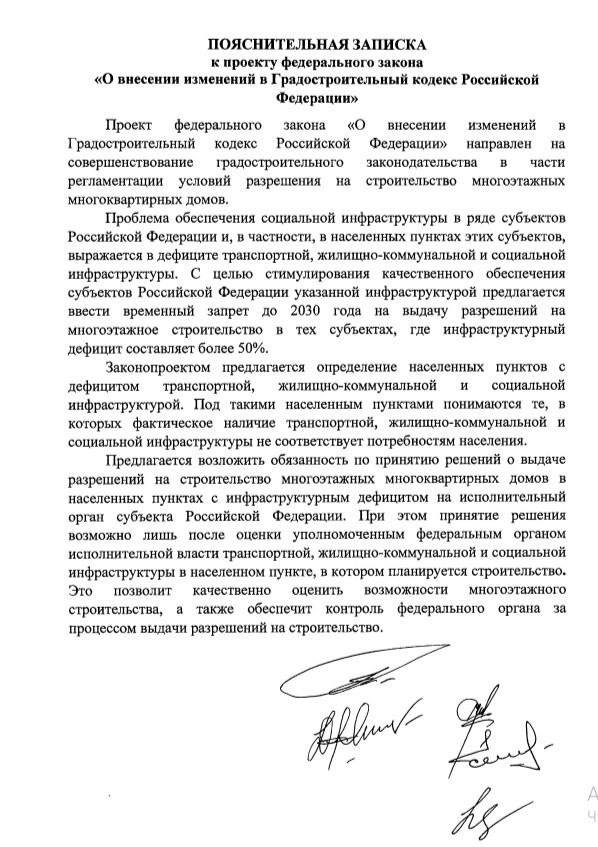 В Госдуму внесен законопроект, запрещающий до 2030 года строительство многоквартирных домов в населенных пунктах со значимым дефицитом инфраструктуры.