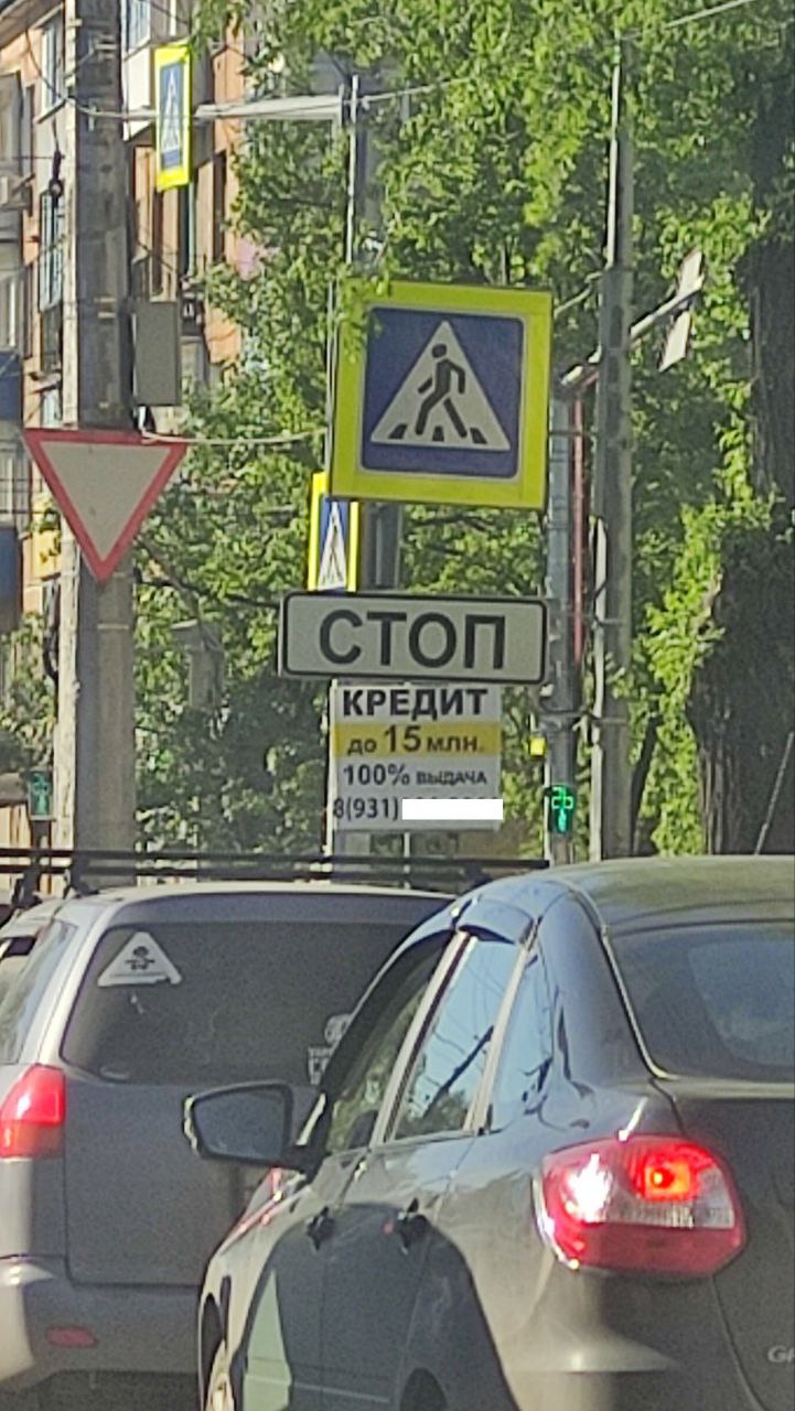 В некоторых случаях несанкционированная реклама получилась со смыслом: вроде, и кредит до 15 лямов предложен, но в то же время и СТОП присутствует. А может это программа стоп-кредит в Новокузнецке запущена?