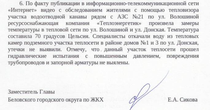 Также в администрации утверждают, что старые водопроводные сети, ранее выведенные из эксплуатации, отключены и выведены из городской системы водоснабжения. По информации водоснабжающей организации МУП "Водоканал", увеличения расхода не зафиксировано, порывы на сетях отсутствуют.