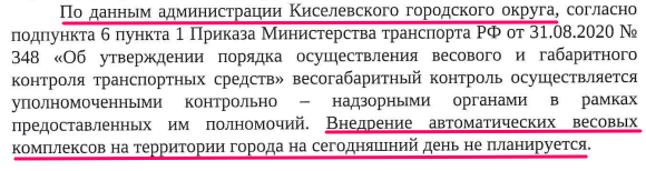 По данным Министерства жилищно-коммунального хозяйства и дорожного комплекса Кузбасса, в регионе работает система контроля веса грузовиков. На основных трассах установлено 24 автоматических пункта, которые следят за тем, чтобы большегрузы не превышали допустимую массу.