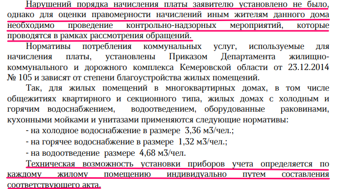 Поскольку ИПУ отсутствуют, а возможность их монтажа подтверждена, начисления производятся по нормативам потребления с применением повышающего коэффициента. Это полностью соответствует действующему законодательству, отметили в ГЖИ.