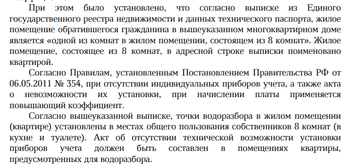Жильцы обращались во все инстанции, но получали противоречивые ответы. Сначала их жильё даже не признавали коммунальной квартирой, однако позже ГЖИ изменила позицию. При этом формально такие разрозненные помещения не должны считаться коммуналкой: согласно Обзору судебной практики ВС РФ от 30.11.2016 (п. 7), комнаты должны иметь общие стены и перегородки. Но крыло из 4‑х комнат никак не соединено с санузлом и кухней, жильцы ходят на кухню и в уборную через лестничную площадку, но при этом жильё признали коммуналкой.
