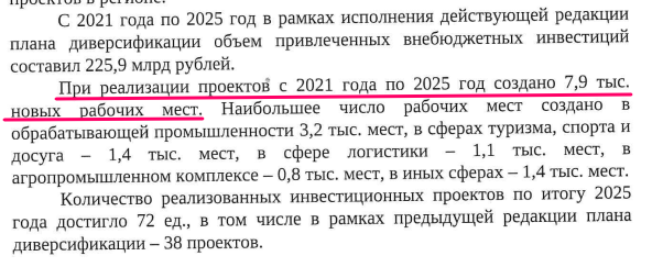 В правительстве уточнили, что в соответствии с действующей редакцией плана диверсификации реализуется 160 инвестиционных проектов с плановым объёмом инвестиций к 2030 году - 550,97 млрд. рублей, в том числе к концу 2026 года - 392,8 млрд. рублей.