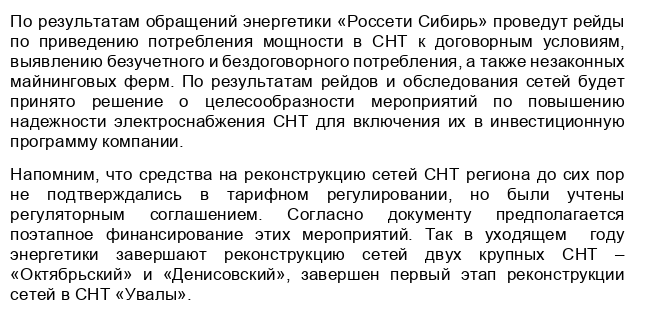 Представители "Россети Сибирь" тем временем сообщают, что, несмотря на колоссальное тарифное недофинансирование в размере 1,8 млрд. рублей, компания продолжает выполнять обязательства. В 2025 году при тарифе в 405 мл.н рублей было исполнено 1689 договоров на сумму 457 млн. рублей.
