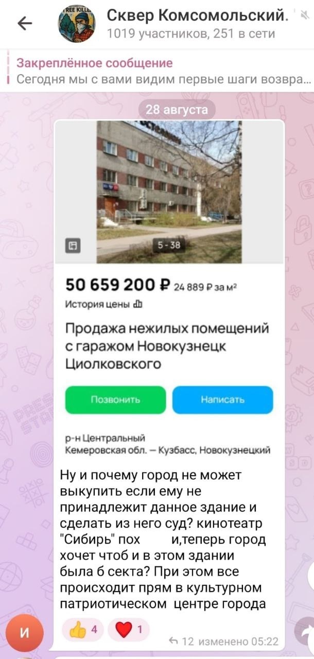 Источник фото: ТГ чат "Сквер Комсомольский".