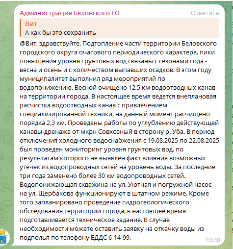 В Белове ведётся работа по водопонижению, уверяют в соцсетях чиновники администрации Беловского городского округа население. Но жители не доверяют "красивым отпискам".