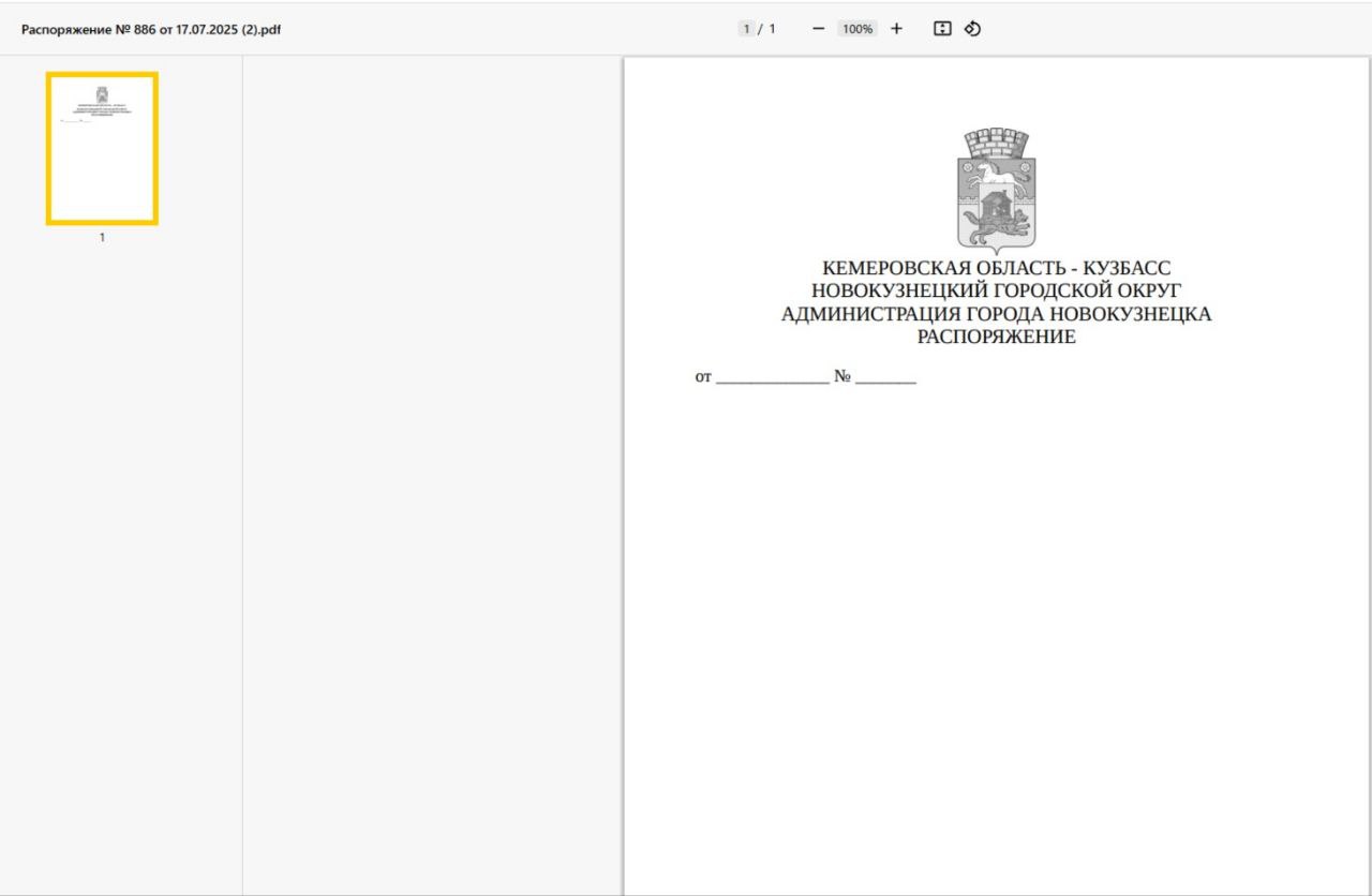 На официальном сайте администрации города Новокузнецка размещено Распоряжение №886 от 17.07.2025 «Об организации и проведении публичных слушаний по проекту разработанной Схемы теплоснабжения города Новокузнецка до 2044 года». Вот только вместо документа почему-то открывается пустой бланк.
