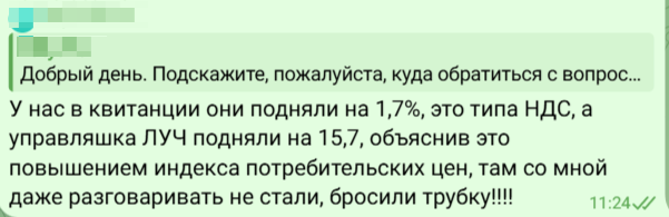 Разброс в процентах повышения - от 1,7% у ресурсников до 15,7% у отдельных УК - вызывает у людей недоумение и вопросы о правомерности таких решений. При этом горожане отмечают, что не понимаю, чем обосновано столь значительное повышение коммуналки, ведь расчёты остаются непрозрачными.