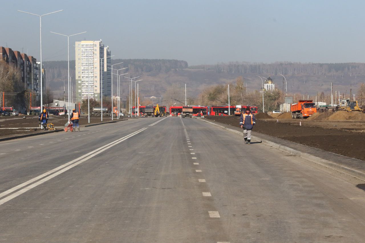 Четыре дорожные полосы уже заасфальтированы, нанесена разметка. Строители заканчивают обустройство пешеходного тротуара и велодорожки, оформление газонной части.