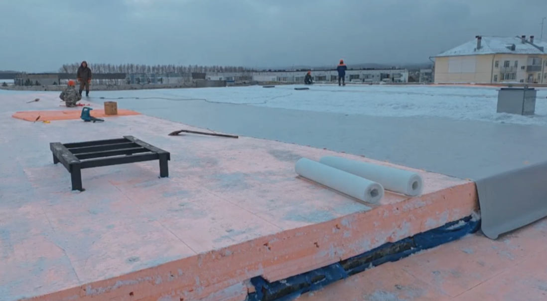 Строители активно ведут монтаж фасада здания, практически завершена работа над кровлей. На втором и третьем этажах уже запущено отопление, специалисты приступили к подготовке стен под внутреннюю отделку помещений.