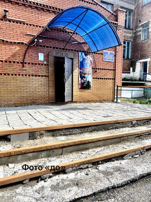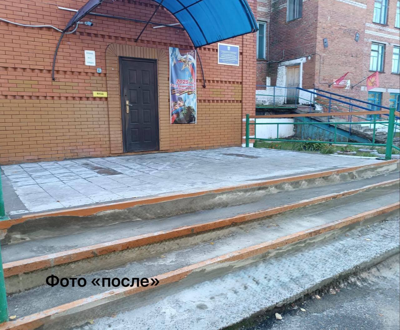 Благодаря вмешательству прокуратуры города Мариинска в одной из школ города отремонтировано крыльцо.
