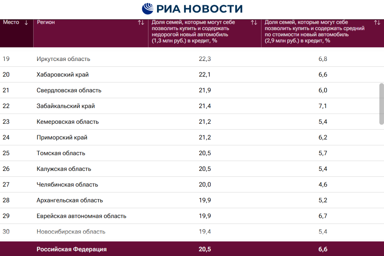 Эксперты оценивали, какая доля семей в каждом регионе может позволить себе не только взять авто в кредит, но и полноценно содержать машину, сохраняя при этом обычный уровень жизни. Расчёты строились на статистике зарплат работающих жителей регионов за 2024–2025 годы.