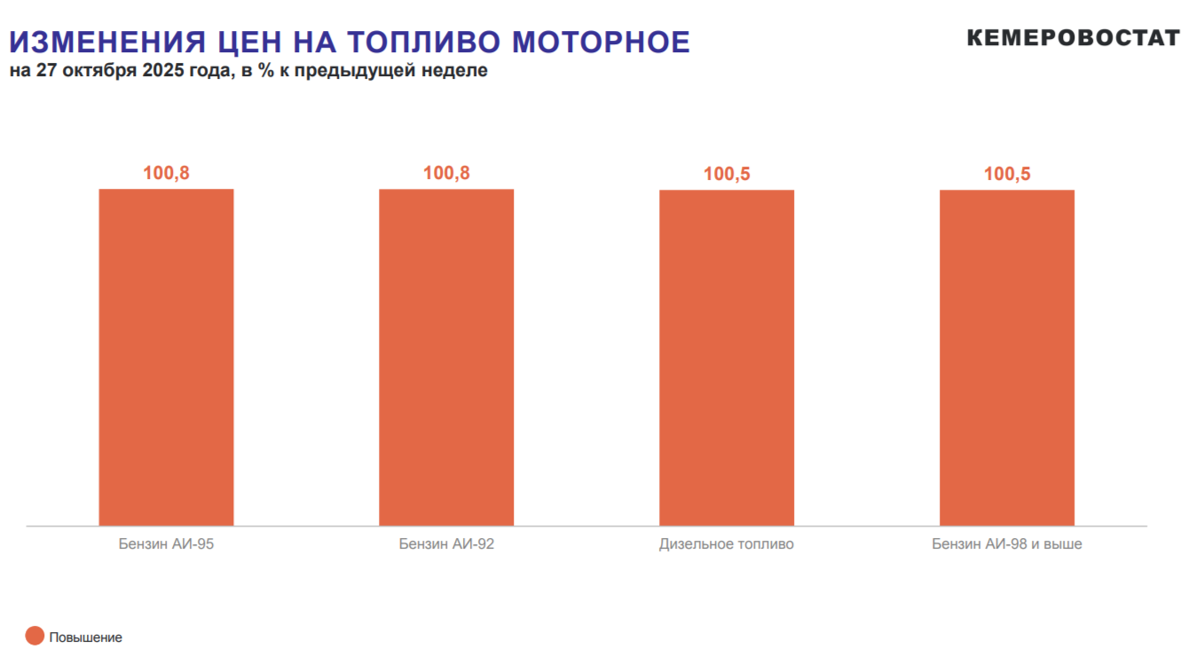 Бензин продолжает дорожать. АИ-95 и АИ-92 прибавили в цене 0,8%, Дизельное топливо и АИ-98 подорожали на (0,5%).