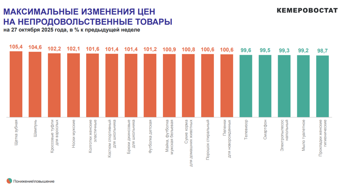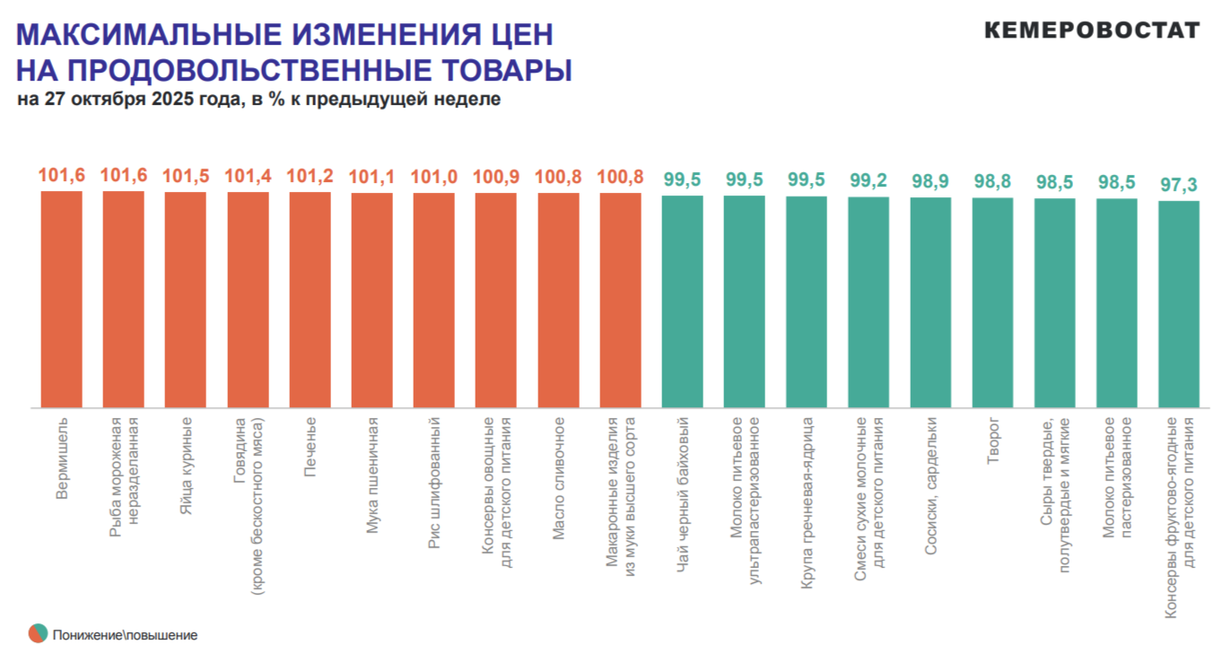 Специалисты Кемеровостата сообщили о том, как изменились на цены и товары в Кузбассе за неделю.