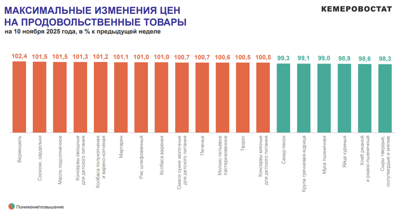 Специалисты Кемеровостата сообщили о том, как изменились цены на товары в Кузбассе за неделю.